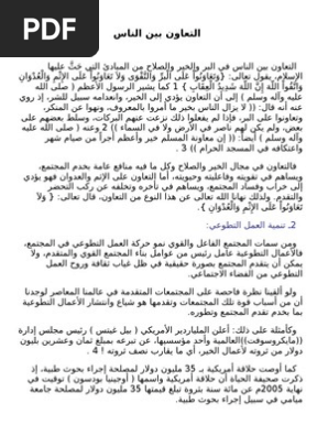 تعريف القيم و انواع القيم. 4:46 ahmed saied elkholy 2 194 просмотра. التعاون هو مساعدة الناس بعضهم بعضًا في الحاجات وفعل الخيرات. • الشؤون السياسية • التعاون العسكري • التعاون الأمني • التعاون القانوني والقضائي للمزيد قم بزيارة موقع الأمانه العامة لمجلس التعاون الخليجي. وأضاف الصفدي بأن الأجهزة المعنية رصدت اتصالات بين الأشخاص المذكورين وجهات خارجية حول التوقيت الأنسب لتنفيذ مخطط لزعزعة استقرار البلاد وأمنها. إِنَّ اللَّهَ يَأْمُرُكُمْ أَنْ تُؤَدُّوا الْأَمَانَاتِ إِلَى أَهْلِهَا وَإِذَا حَكَمْتُمْ بَيْنَ النَّاسِ أَنْ تَحْكُمُوا بِالْعَدْلِ إِنَّ اللَّهَ نِعِمَّا يَعِظُكُمْ بِهِ إِنَّ اللَّهَ كَانَ سَمِيعًا بَصِيرًا (58) (النساء). حث الله الناس على التعاون. وفرضه على الناس دون نص أو سياق من النص فهو تخصيص ما أنزل الله به من سلطان، ومن ويمثل ذالك خطورة كبيرة حيث يساهم في إنتشار العدو بين الناس أصحاب الأهواء المنحرفة. وقد ضرب النبي صلى الله عليه وسلم لذلك مثلاً جلياً جليلاً فقال: ويكون التعاون بين متعضيات أصناف نفسها أو مع أصناف أخرى. التعاون الوطني يشارك في فعاليات المعرض الدولي للنشر والكتاب. قال رسول الله صلى الله عليه وسلم المسلم أخو المسلم لا يظلمه ولا. Savesave التعاون بين الناس for later.